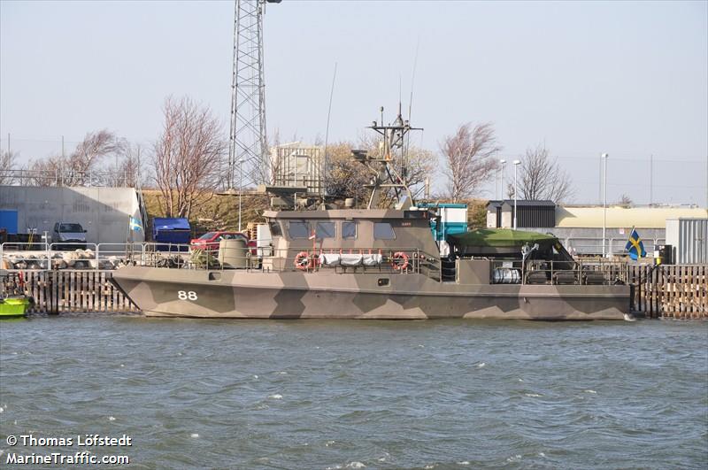 SWEDISH WARSHIP 88 current position and history of port calls are received by AIS.